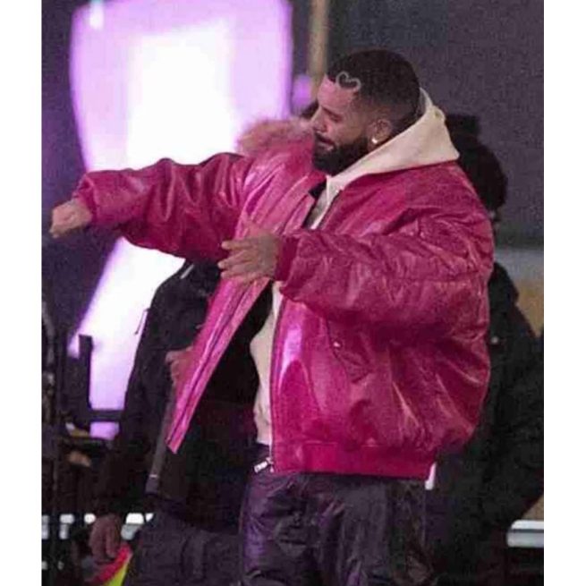 What’s Next Drake Hot Pink Leather Bomber Jacket